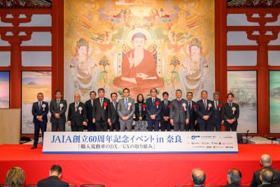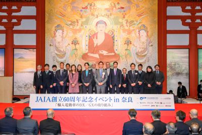 11月26日、日本自動車輸入組合(JAIA)は、「JAIA創立60周年記念イベント in 奈良」を奈良県・薬師寺で開催しました。会場は1300年前に文化と技術が交差する国際的な交流の場であり、(交通)安全祈願を掲げている薬師寺での開催となりました。JAIAは今年で創立60周年を迎え、これまでの輸入電動車の認知向上を高める活動から、カーボンニュートラルに加えて、 安全運転等にも寄与するために、よりGX・ DX(自動運転)を意識したイベントとして実施しました。